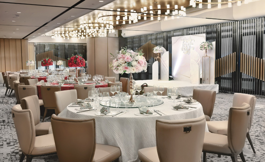 - •酒店提供多元化的婚宴場地,包括雅緻的室內宴會廳「逸軒」中菜廳和充滿綠意的三樓戶外草地「The Terrace」,適合舉辦中式、午宴、晚宴及戶外證婚。