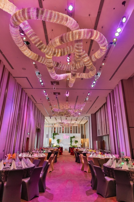 九龍灣百樂門國際宴會廳,採用新穎獨特的室內設計,裝潢精緻細膩,能筵開 75席,給人一種豪華時尚感,與幻變水晶燈拼湊出浪漫醉人的婚宴。
