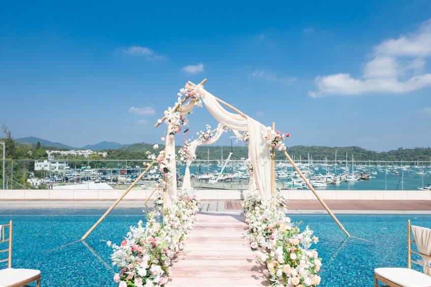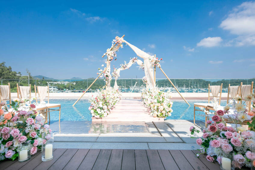 The Pier Hotel Hong Kong座落於白沙灣碼頭海旁,頂層天台花園飽覽獨有270度遊艇海景,令人仿如置身海外浪漫國度。天台花園隨時可化作特色婚宴場地,準新人可按自己的喜好,設計出最具個人風格的婚禮。無論是輕鬆簡約的戶外證婚、典雅華麗的酒會婚禮、夢幻創新的池畔婚禮以至浪漫醉人的西式婚宴、您們都可以任意打造,創造出你倆專屬難忘的甜蜜婚禮。