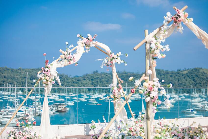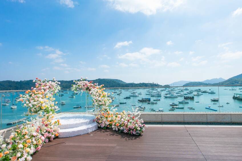 • 頂層天台花園坐擁 270 度壯麗遊艇海景,視野無限,是戶外證婚的理想之選。