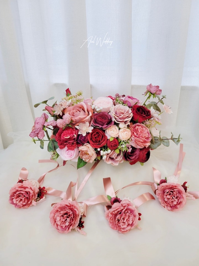 花球是新娘在婚禮的每個環節都用得到的item,例如在新娘出門、證婚時、新娘拋花球的環節等。新人在選購結婚花球時,應根據婚禮預算,計劃要訂製多少款式和數量的花球。一般新人都會訂製兩至三個花球,其中一個必定是絲花花球,除了在鮮花花球凋謝時作後備外,也會用在拋花球環節。其次,新人最好一次過訂製所有花藝產品(例如花球、襟花、手花和花車佈置),好讓花藝師可以為你配搭同一個色調的主題。另外,新娘花球也有不同的形狀,包括圓形花球、水滴形花球、彎長形花球、小型花球、田園式花束等,新人可以根據婚禮的風格和新娘的婚紗款式,而選擇合適的結婚花球。